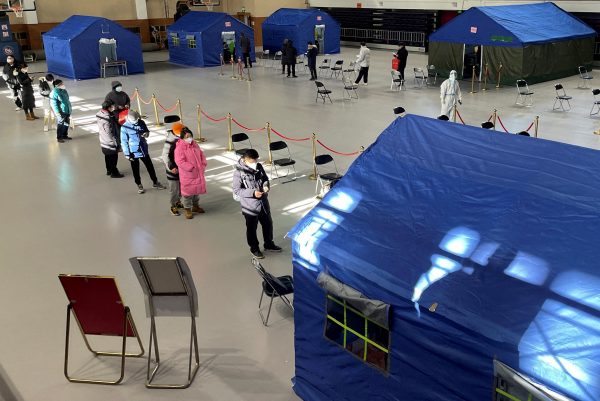 Ασθενείς προσέρχονται σε αυτοσχέδια «κλινική πυρετού» στο Πεκίνο (Reuters)